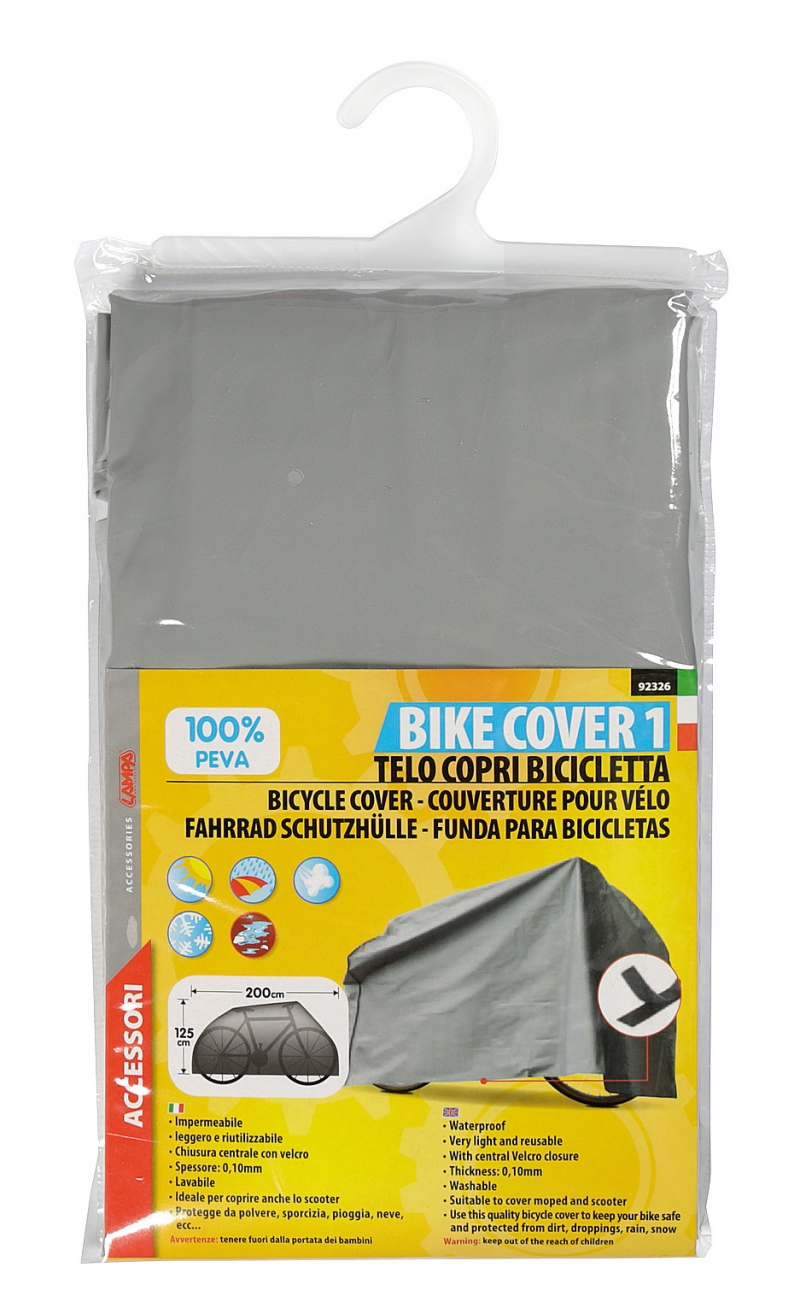 Umývateľný, vhodný na zakrytie bicykla, mopedu a skútra.