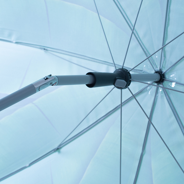 Slunečník nabízí snadné nastavení výšky, ohebný kloub pro možnost náklonu a také hrot do zapíchnutí do země nebo stojanu. Snadné a plynulé nastavení výšky.