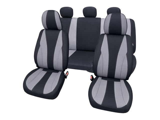 Univerzální autopotahy, sada pro 5 sedadel, střih LIMA. 3D air mesh síťovina. Pro dělitelná zadní sedadla v poměru 1/3. Včetně opěrek hlavy, homologováno pro boční airbagy. Vhodné pro sklopná sedadla, zadní loketní opěrku a 3. bezp. pás.