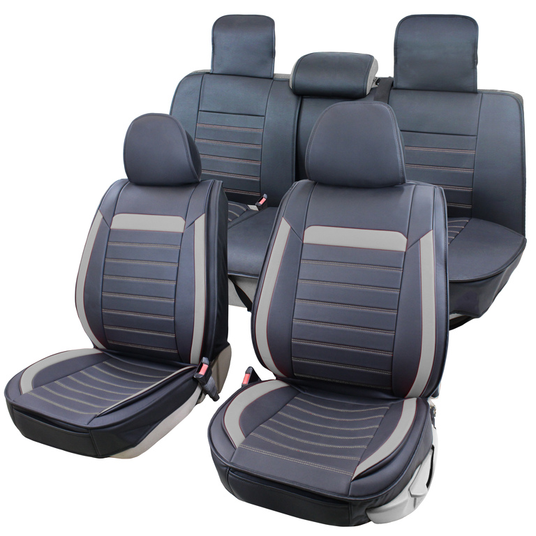 Autopotahy neklouzají po sedadle díky měkkému molitanu na vnitřní straně potahu. Středové části jsou vyrobeny z eko kůže. Boky z elastického polyesteru a záda z elastického polyesteru.