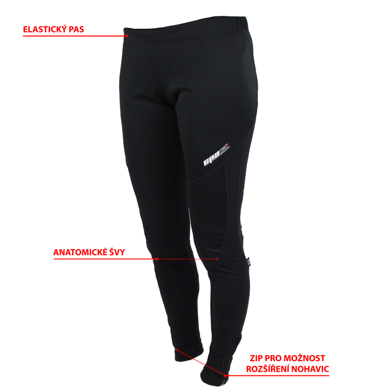 Nohavice mají boční zip pro otevření. Pas je elastický. Ploché švy a anatomicky tvarovaná kolena zajistí dlouhodobý komfort