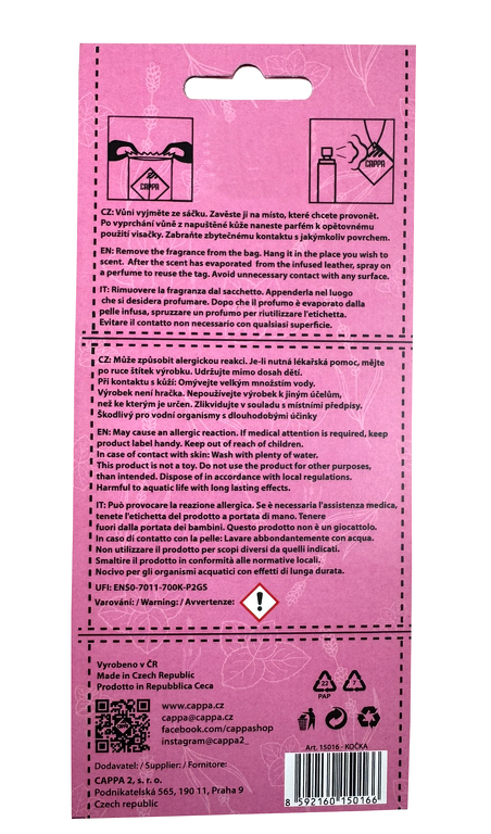 Svežina, ki ne zbledi - vonj v tem osvežilcu za usnje bo dolgo trajal, tako v avtomobilu kot na mizi ali v katerem koli drugem prostoru. Poleg tega lahko izberete tisti parfum, ki vam najbolj ustreza.