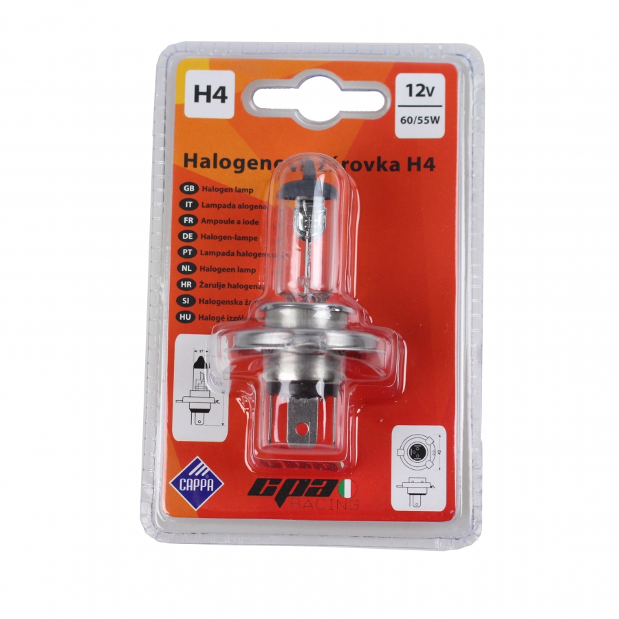 Autožárovka standardní, halogenová H4 do předních světlometů, 60/55W, patice P43t.