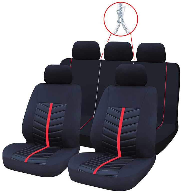 Zadnji sedeži so opremljeni s dvema zadrgama za zlaganje deljenih naslonjal. Prevleke za avtomobilske sedeže so primerne za vozila z nerazdeljenimi zadnjimi sedeži ter sedeži, deljenimi v razmerju 1/3.