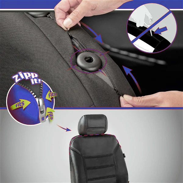 Odprtine za naslonjala za glavo in vzvodi za pritrditev so že pripravljeni in opremljeni z zadrgo za najboljše možno prileganje.