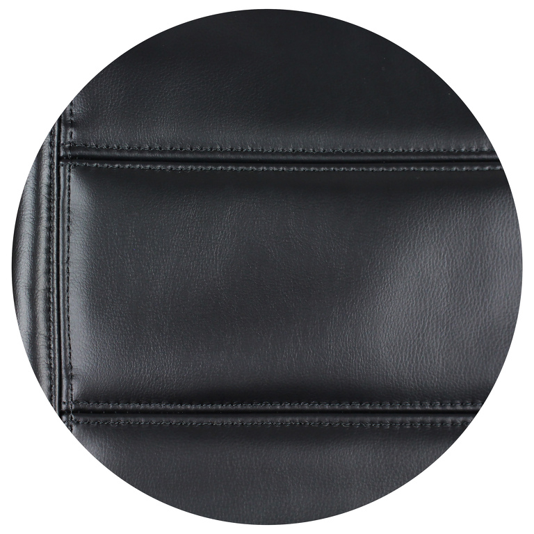 Avtosedež je izdelan iz pravega usnja, prevlečenega s PUR peno v prevleki. Stranice in hrbet prevleke so izdelani iz poliuretana. Na sprednji strani sedežne blazine je praktičen žep.