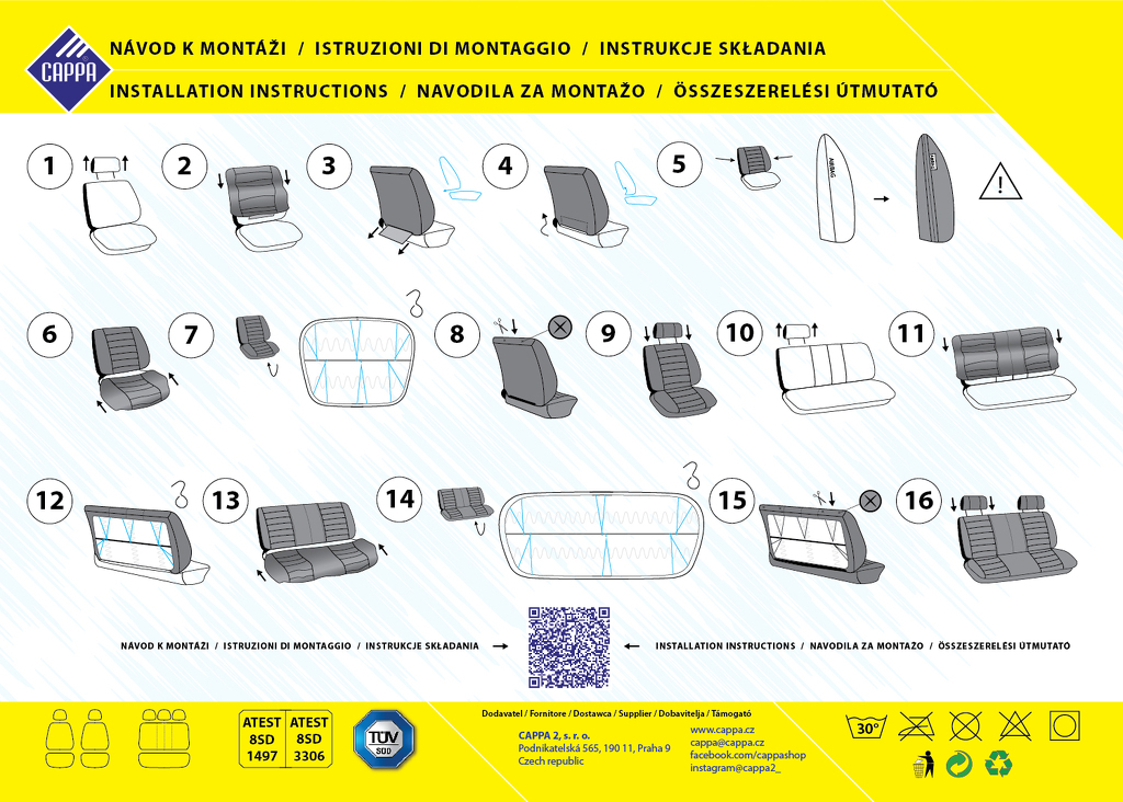 - prevleke za avtomobilske sedeže je mogoče prati v pralnem stroju pri 30°.