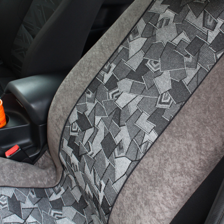 Autopotahy ze semišové Alcantary a tkaniny se žakárovým středem. Cenové dostupný materiál s dobrou odolností. Vhodné pro osobní i užitková vozidla.