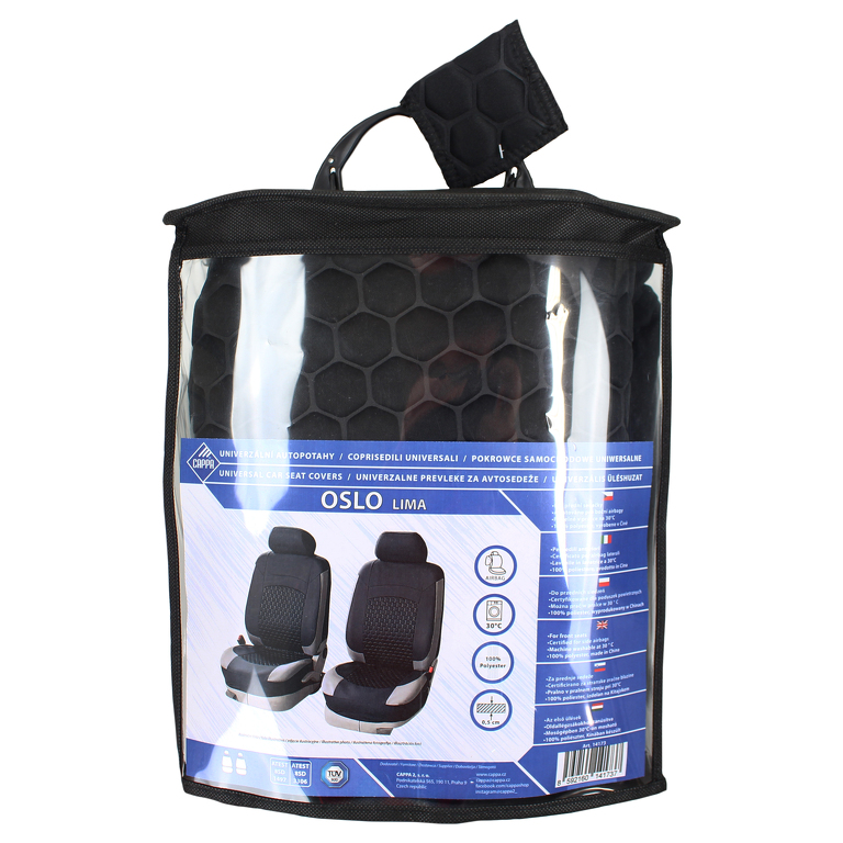 Avtomobilski sedežni prevleki OSLO so izdelani in certificirani za uporabo na avtomobilskih sedežih s stranskimi zračnimi blazinami. V primeru sprožitve zračne blazine se bo posebej zašita šiv na strani avtomobilske sedežne prevleke raztrgala.