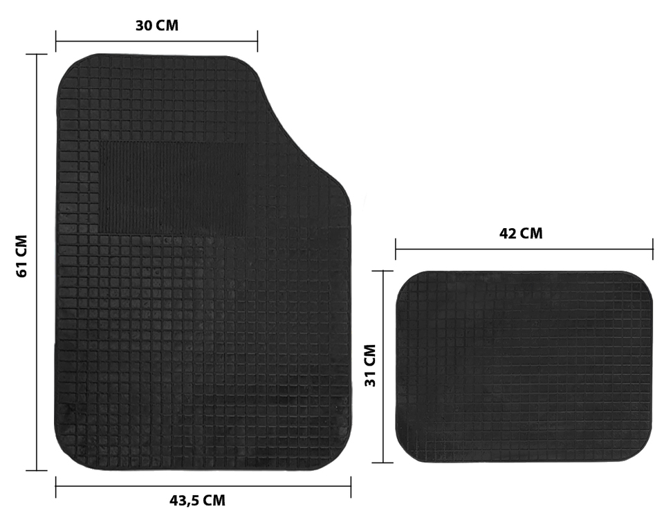 Univerzalni gumijasti tepihi Pollicione iz kvalitetne kaljene gume. Gumijasti tepihi so primerni za skoraj vse tipe avtomobilov. Odbojnost tekočin je ena od glavnih prednosti teh gumijastih tepihov. Izdelani so iz materiala, ki se ne vpija in ne prepušča, zelo dobra lastnost je tudi vzorec, ki oteži polivanje tekočine, višji rob onemogoča, da bi le-ta stekla na tla vašega vozila. Preproge so zelo enostavne za vzdrževanje, zlahka jih očistite z vodo in običajnimi čistili.