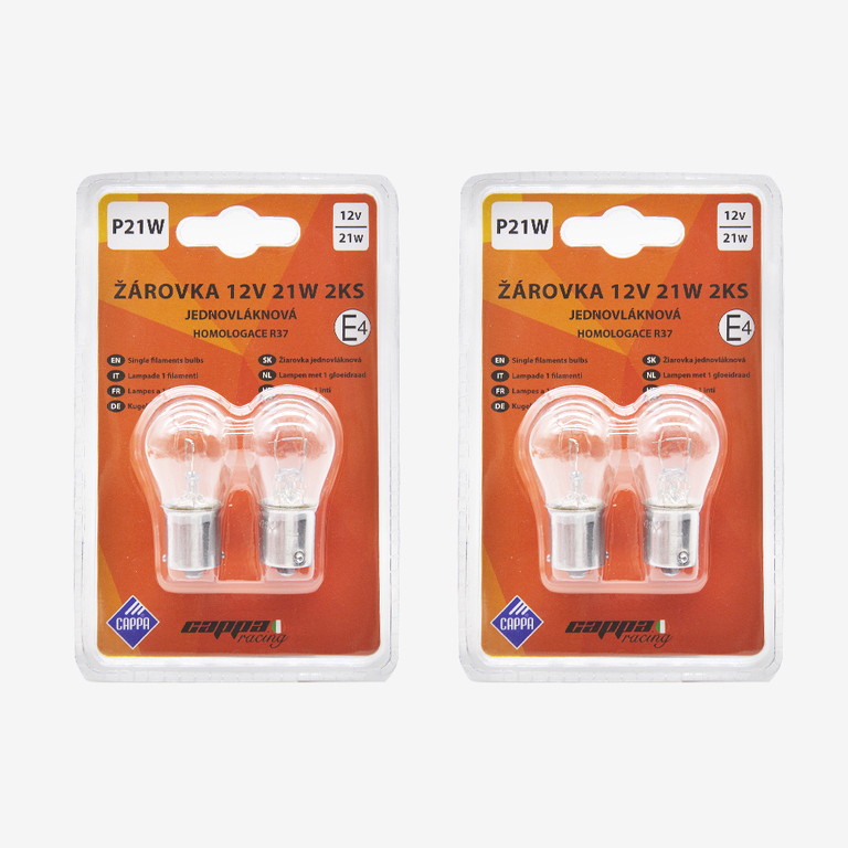 Par klasičnih žarnic BA15S 12 V / 21 W - idealne za smernike, zadnje luči ali zavorne luči. Enostavna namestitev, zanesljivo delovanje. Komplet 2.