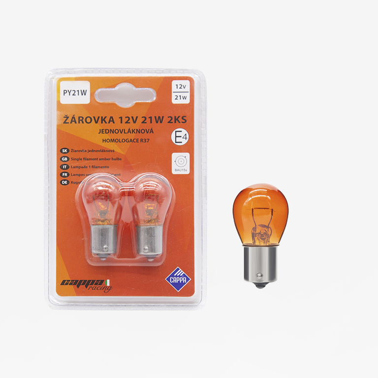 Uporablja se predvsem za smernike (spredaj/zadaj). Število kosov v pakiranju: 2 kosa. Odobritev. Napetost: 12V. E. Vtičnica: PY21W. Moč: 21W